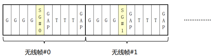 SLB采用时分双工模式。时分双工属于全双工,即允许两个设备同时相互进行数据传输;与全双工对应的是半双工,即允许二台设备之间的双向资料传输,但不能同时进行。时分双工,是利用时间分隔多任务技术来分隔发送及接收的信号。它利用一个半双工的传输来模拟全双工的传输过程。时分双工在非对称网络(上传及下载带宽不平衡的网络)有明显的优点,它可以根据上传及下载的资料量,动态的调整对应的带宽,如果上传数据量大时,就会提高上传的带宽,若数据量减少时再将带宽降低。SLB的超帧格式如图6所示,每超帧包含48个无线帧,每超帧持续时间为1ms,每个无线帧的持续时间为20.833μs。其中G符号代表G节点向T节点发送的符号,T节点代表T节点向G节点发送的符号,SG/ST分别代表G/T符号中可用于开销符号的符号资源,每个无线帧的开销符号资源可灵活配置为0、1或2个符号,GAP是G链路符号和T链路符号的切换间隔。采用常规循环前缀时,无线帧支持14种G符号T符号配比;采用扩展循环前缀时,无线帧支持12种G符号T符号配比。灵活的G/T符号配比可以满足不同应用场景下不同链路方向业务速率的要求。
