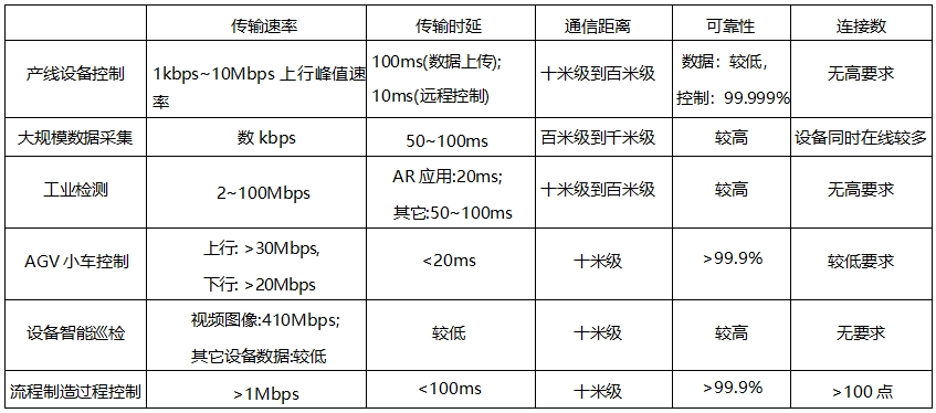 表4.智能制造的无线通信新需求