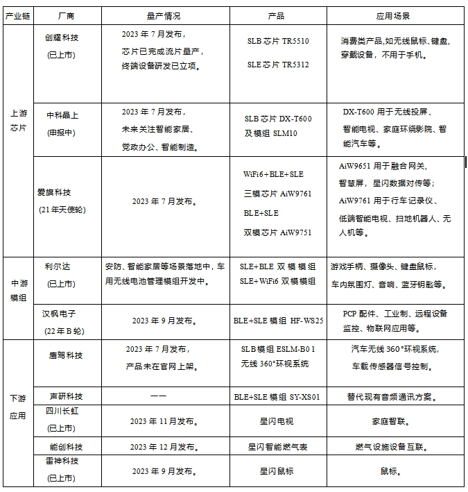 表5.星闪产业链发展概览
