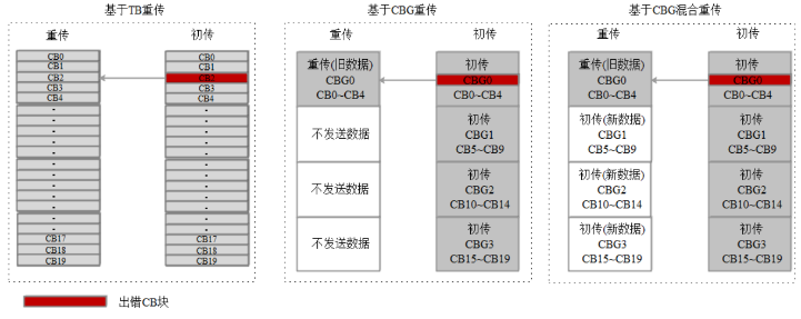 星闪SLB支持3种重传方案,如图5:基于传输块(TB)的重传、基于编码块组(CBG)的重传和基于CBG的初传重传混合传输。TB重传是指,当1个TB里有任何1个编码块(CB)出错,则重传整个TB的数据。重传时,CB分段数C与第一次传输时分段数相同,但是每个CB的信道比特数与第一次可能不同。CBG重传对每个CB来说,实现过程与TB重传一样。与TB重传不同的是:CBG重传,只重传CB出错所在的CBG。CBG混合重传是指每次传输,既有上一个TB重传的CBG,也有新TB初传的CBG。分段数与该次传输关联的最近的上一次TB初传时包含的码块分段的数量相同。所有初传CBG组成一个新的TB。TB和CBG重传,根据重传次数、重传的信道比特数、码率等不同场景,可获得不同的性能收益,在高码率(如R=7/8)情况下,误块率为10-2时,IR-HARQ相比CC-HARQ可得到2.0dB以上的信噪比性能收益。CC-HARQ实现复杂度低于IR-HARQ,具体应用中,可根据实际性能/复杂度要求进行方案选择。星闪SLB采用HARQ技术,当编码块个数在4~8之间时,相比数据链路层ARQ重传可以获得13%~110%的系统吞吐量增益。c.离散单子载波调度 SLB支持最小1个子载波的调度粒度,G节点可根据各用户在不同子载波上的信道衰落情况(相同子载波,不同用户对应的频域衰落系数不同),调度不同的子载波进行数据传输,最大程度实现最优子载波组合调度,提升系统可靠性。
