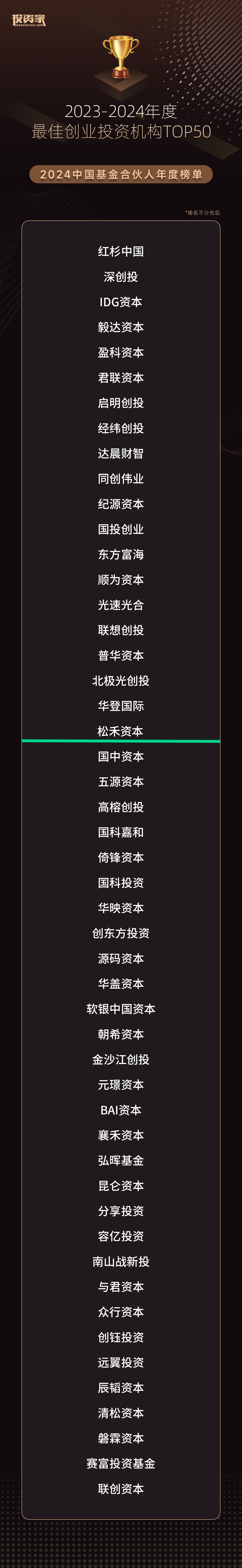 松禾资本荣获投资家网2024基金合伙人年度榜单多项荣誉