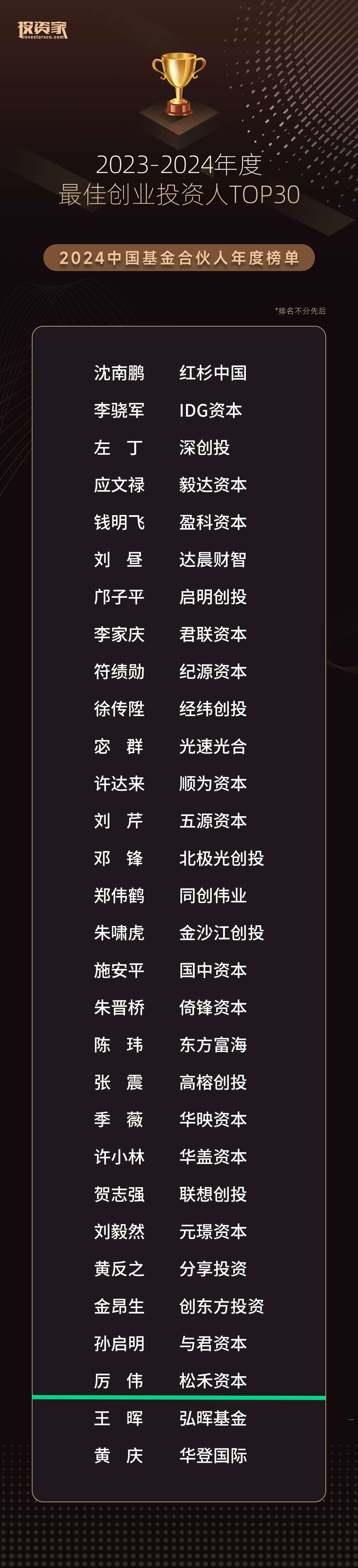 「最佳创业投资人TOP30 」
